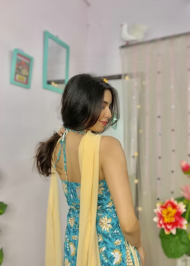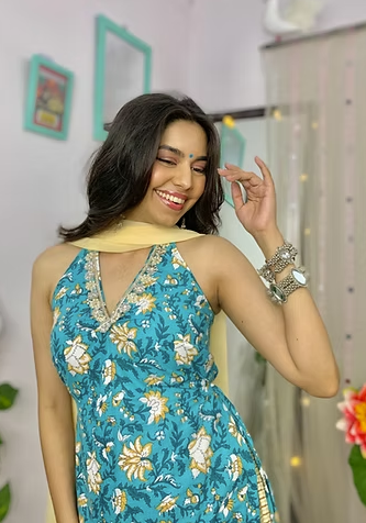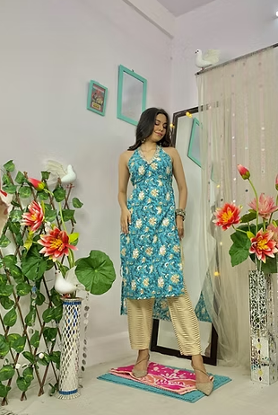 Fabric: Pure cotton kurti paired with comfortable bell-bottom pants.